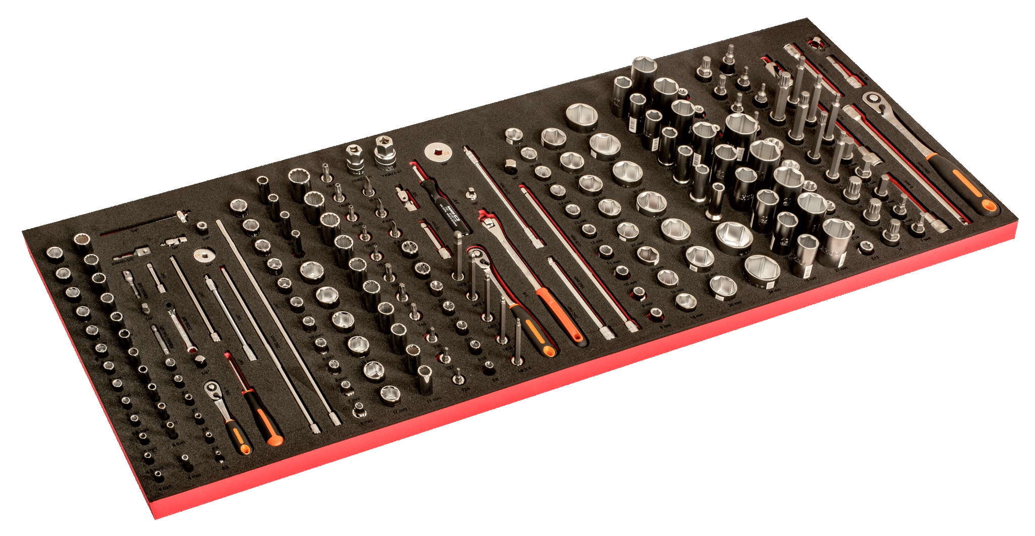 - Complete 53″ foam laser marked inlays and drawers to hold extra large tools