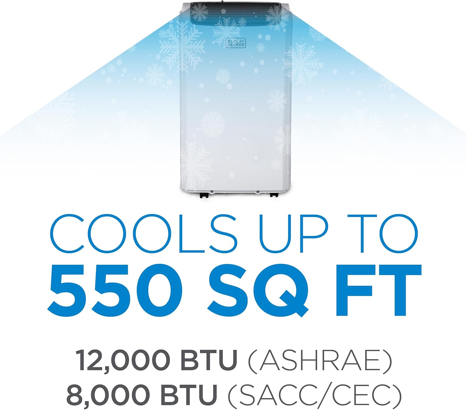 • Portable AC: Take this personal air conditioner (16.5” x 11.7” x 27.9) in rooms up to 550 sq. ft. Stay cool in the hot summer months and sleep well with this BLACK+DECKER ac unit for bedroom