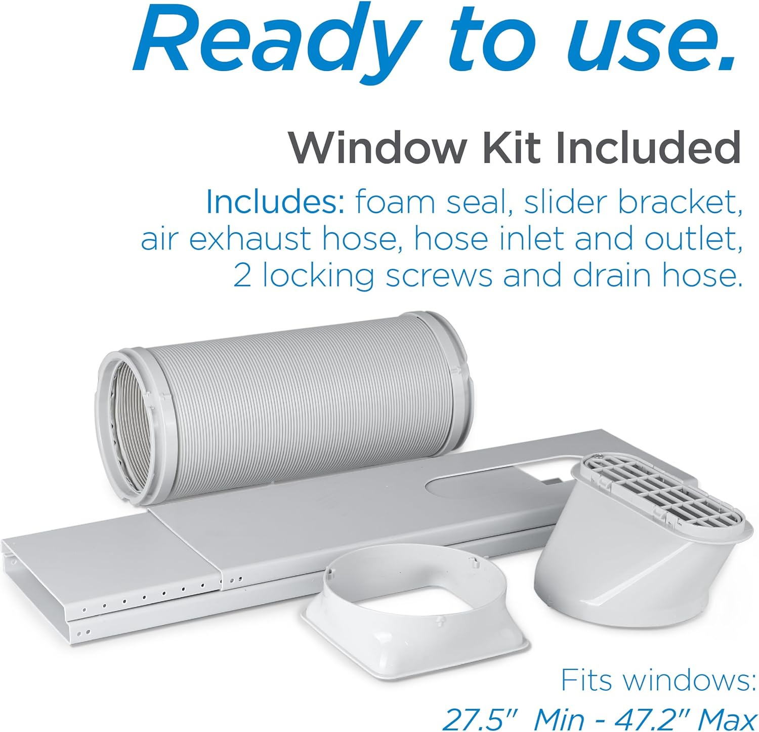 Yes. It includes: panels that fit horizontal or vertical window openings from 20.5″ to 59″, 5-inch diameter Threaded Exhaust Hose, drain hose, foam seal, and hose inlet with outlet