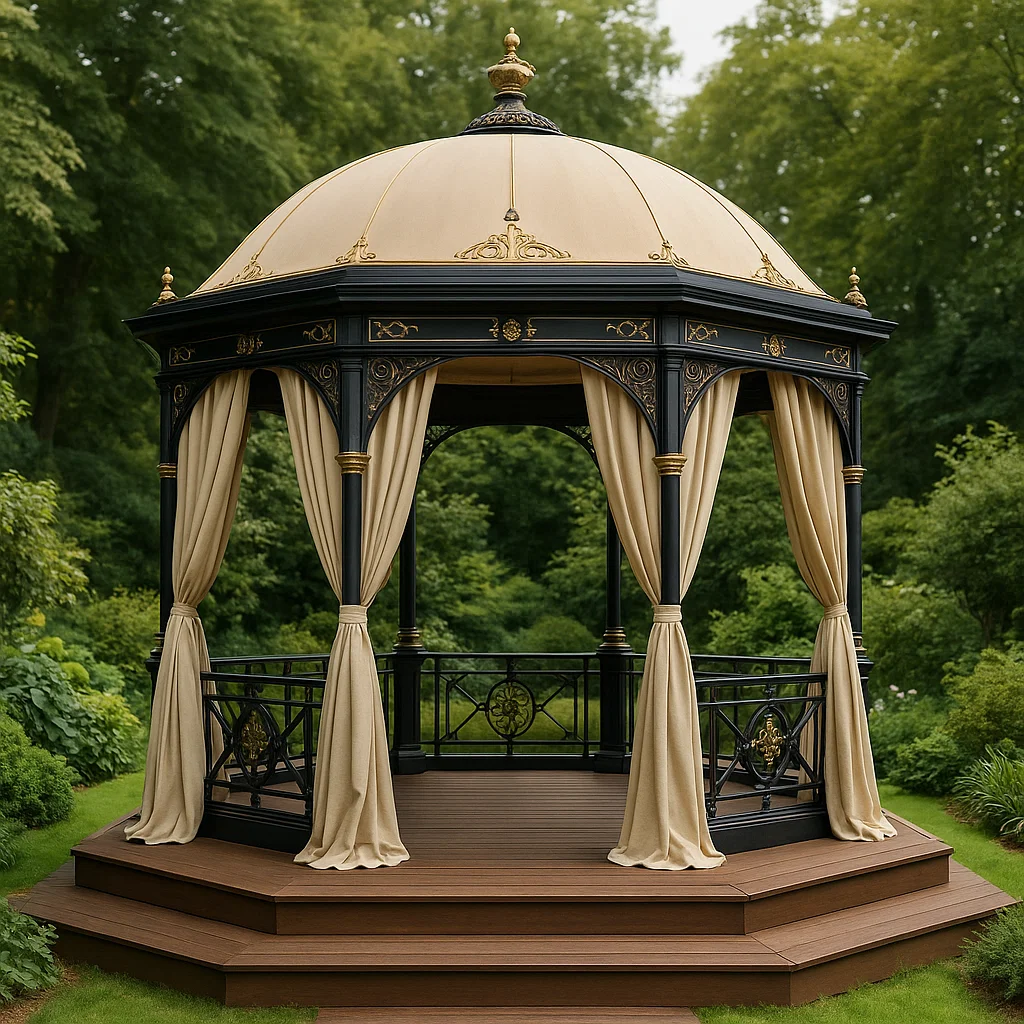 Pabellón de jardín. techo octogonal beige y negro de hierro forjado para exterior jardín. 400x400x280 cm