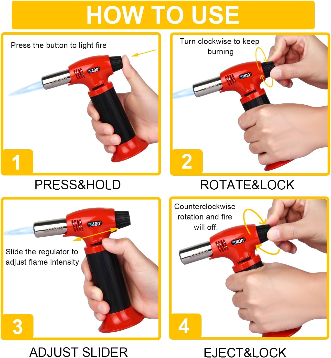 Usage | Ideal for caramelizing sugar atop creme brulee, glazing a baked ham, searing a steak, roasting bell peppers, melting cheese, and toasting breadcrumbs. Also useful for lighting your fireplace, candles, or cigars, for a hobby, arts and crafts projects, jewelry making, welding, for multiple camping applications, dabs, and much more |